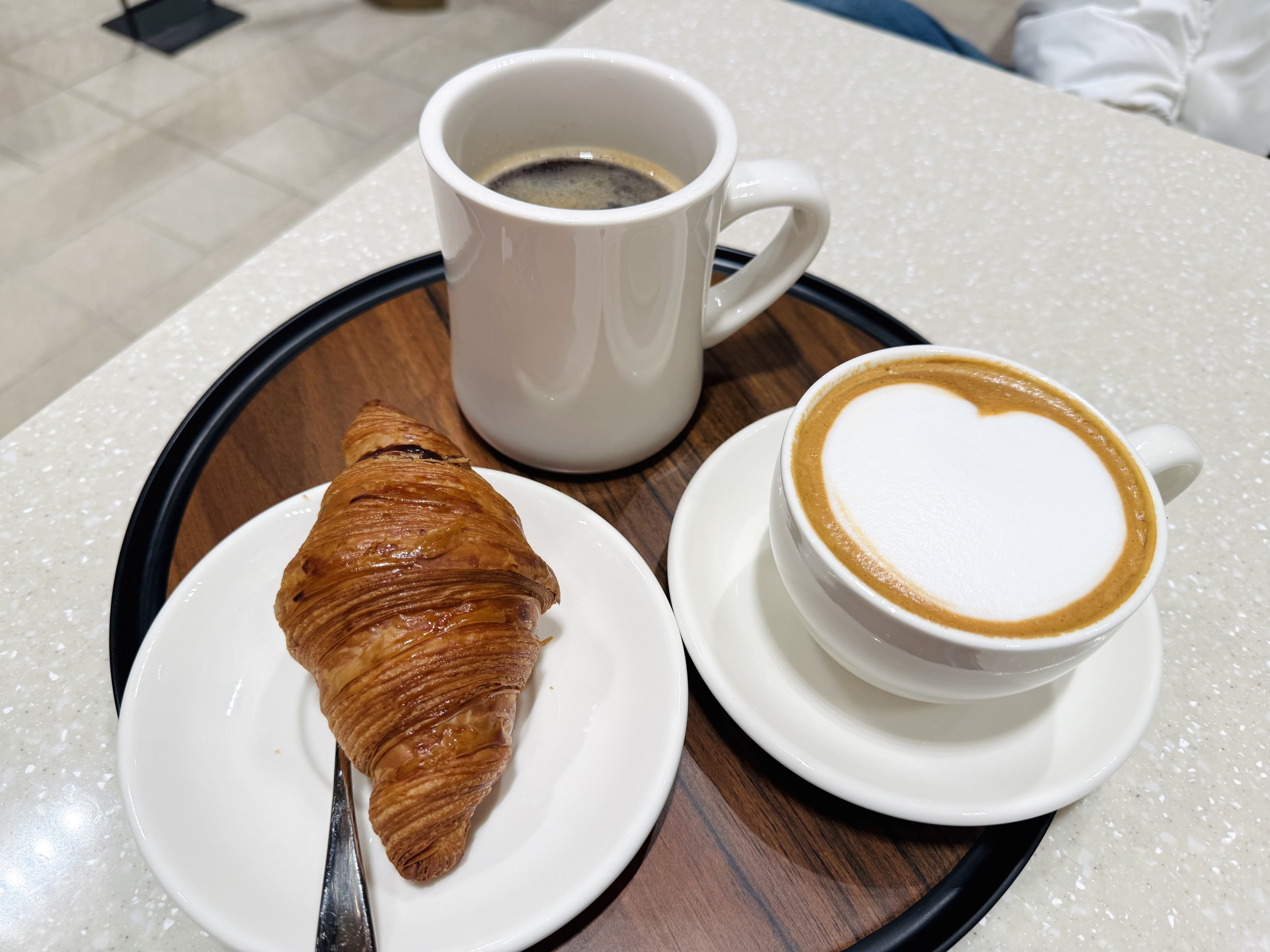 운정 Only 한정 메뉴란 말에 주문해 버린 초코 가득한 크로와상과 라떼 그리고 아메리카노.